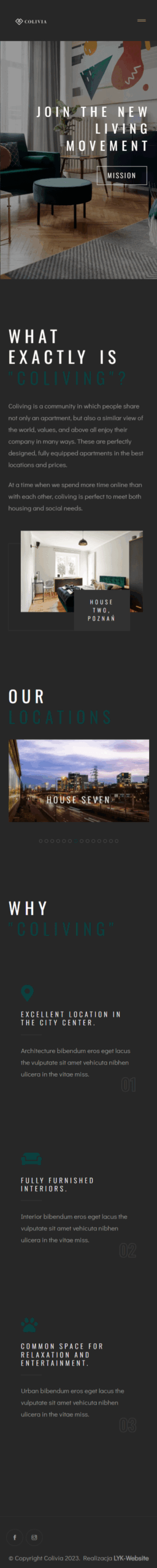 Coliving to wspólnota, w której ludzie dzielą nie tylko mieszkanie, ale również podobne spojrzenie na świat, wartości, a przede wszystkim mogą cieszyć się swoim towarzystwem.. Są to doskonale zaprojektowane, w pełni wyposażone apartamenty w najlepszych lokalizacjach i cenach.